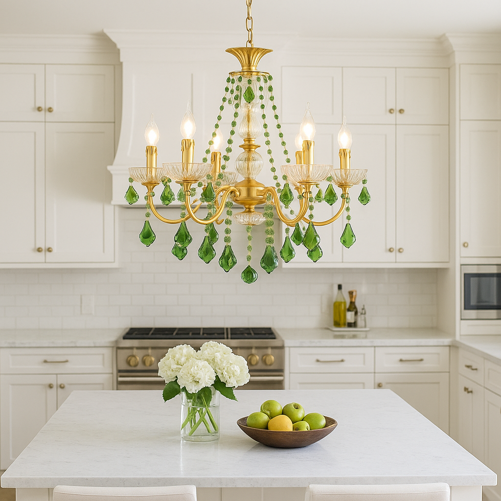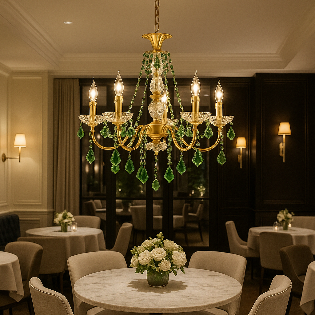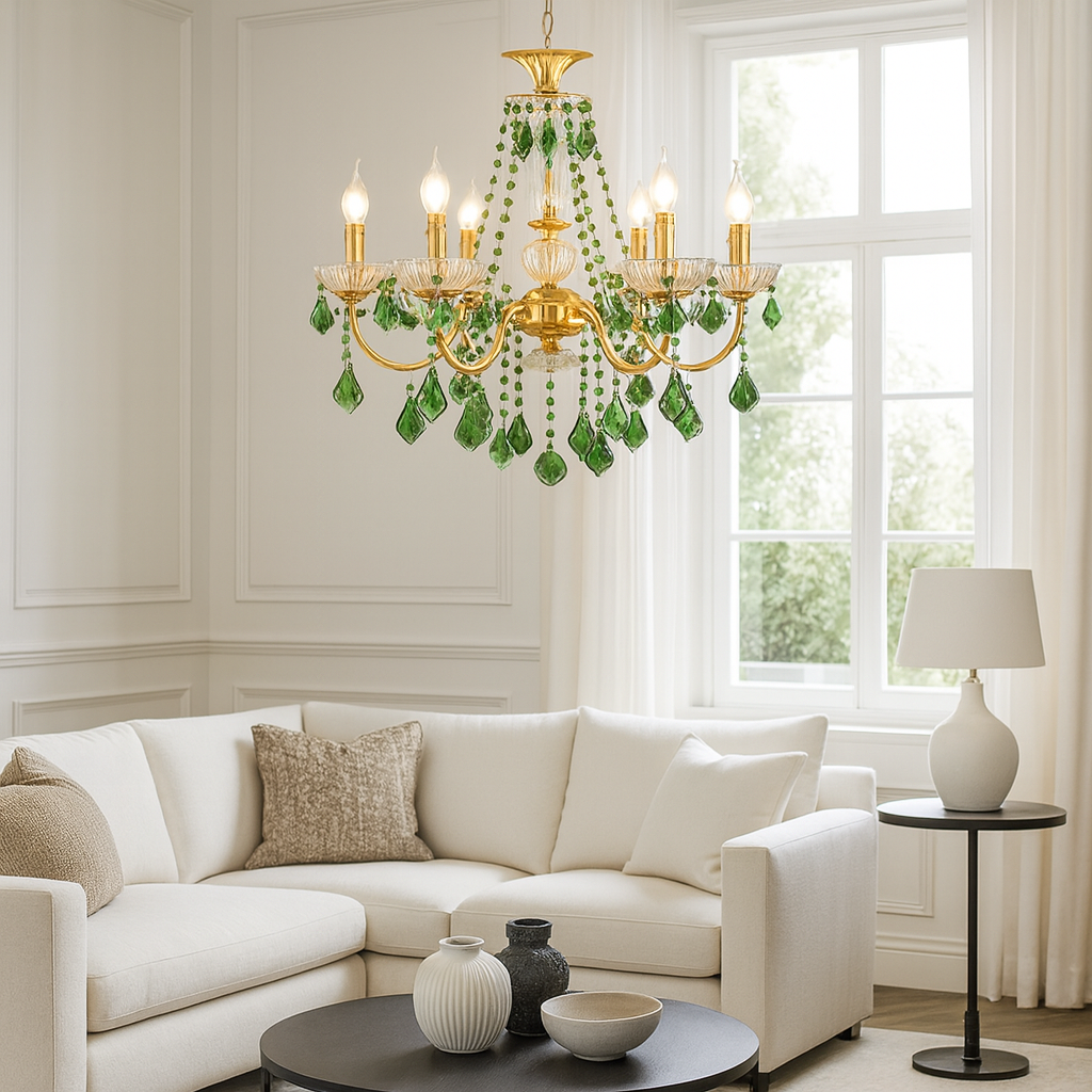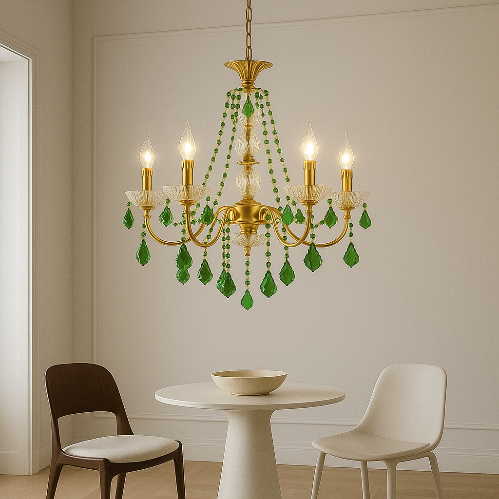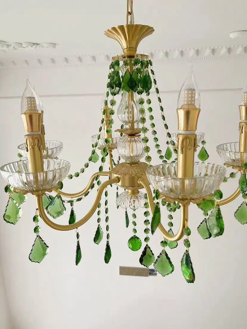 Le lustre cristal vert cuivre rétro est une pièce d’exception qui allie l’élégance intemporelle du cristal coloré à la noblesse du cuivre poli. Ses pampilles vert émeraude captent et reflètent la lumière avec raffinement, offrant une atmosphère chaleureuse et luxueuse.