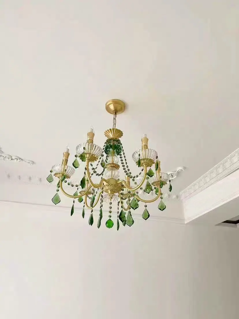 Lustre cristal vert cuivre rétro