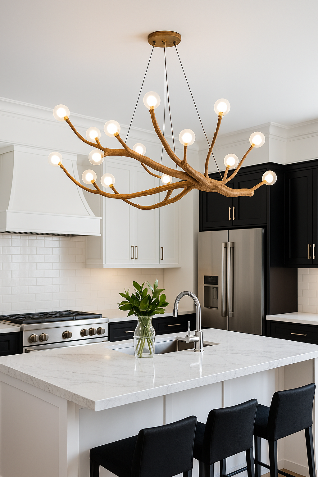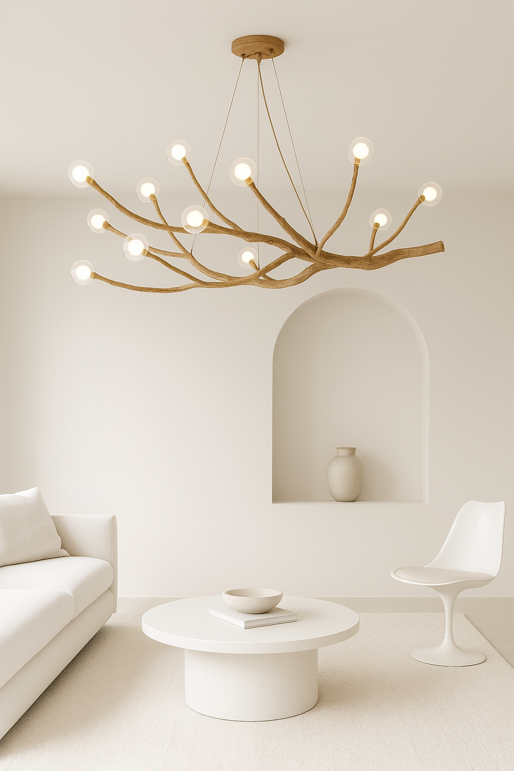 Le lustre design branches résine LED est une pièce maîtresse qui transforme instantanément n’importe quel espace en un décor raffiné et chaleureux. Inspiré par la nature, il imite l’élégance de véritables branches, sublimées par des sphères lumineuses en verre diffusant une lumière douce et homogène.