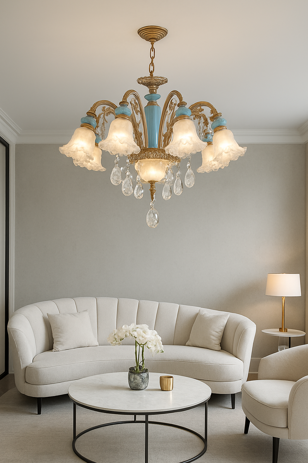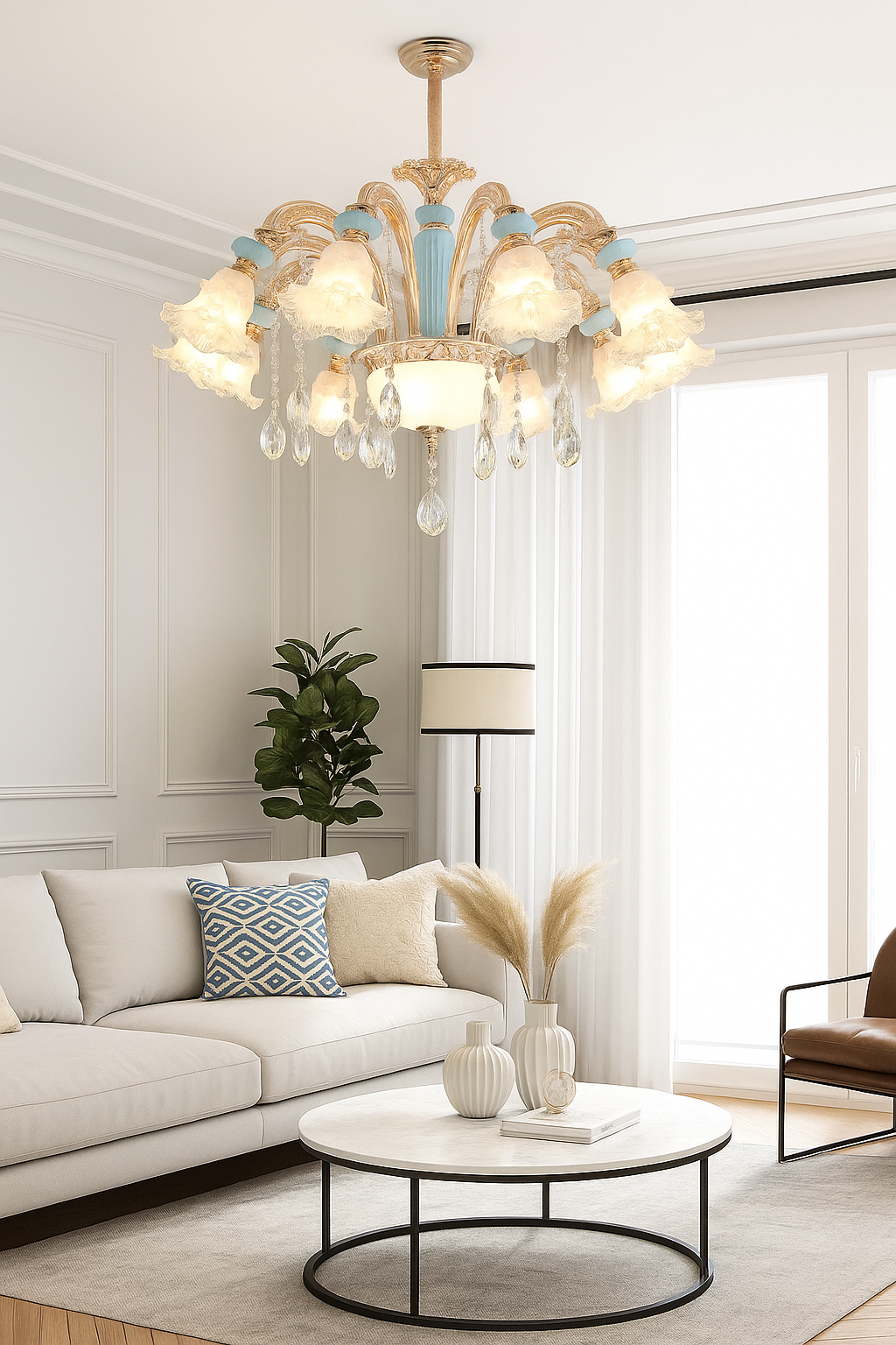 Sublimez votre intérieur avec ce magnifique lustre de style européen en cristal et céramique, conçu pour apporter une touche de luxe et d’élégance à votre salon, salle à manger ou chambre. Ses sources lumineuses E14 diffusent une lumière chaleureuse et raffinée, idéale pour créer une ambiance prestigieuse dans vos espaces de vie.