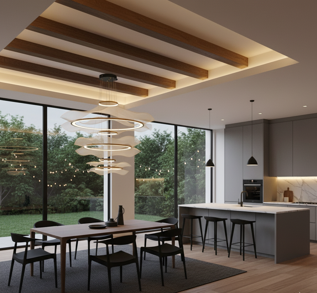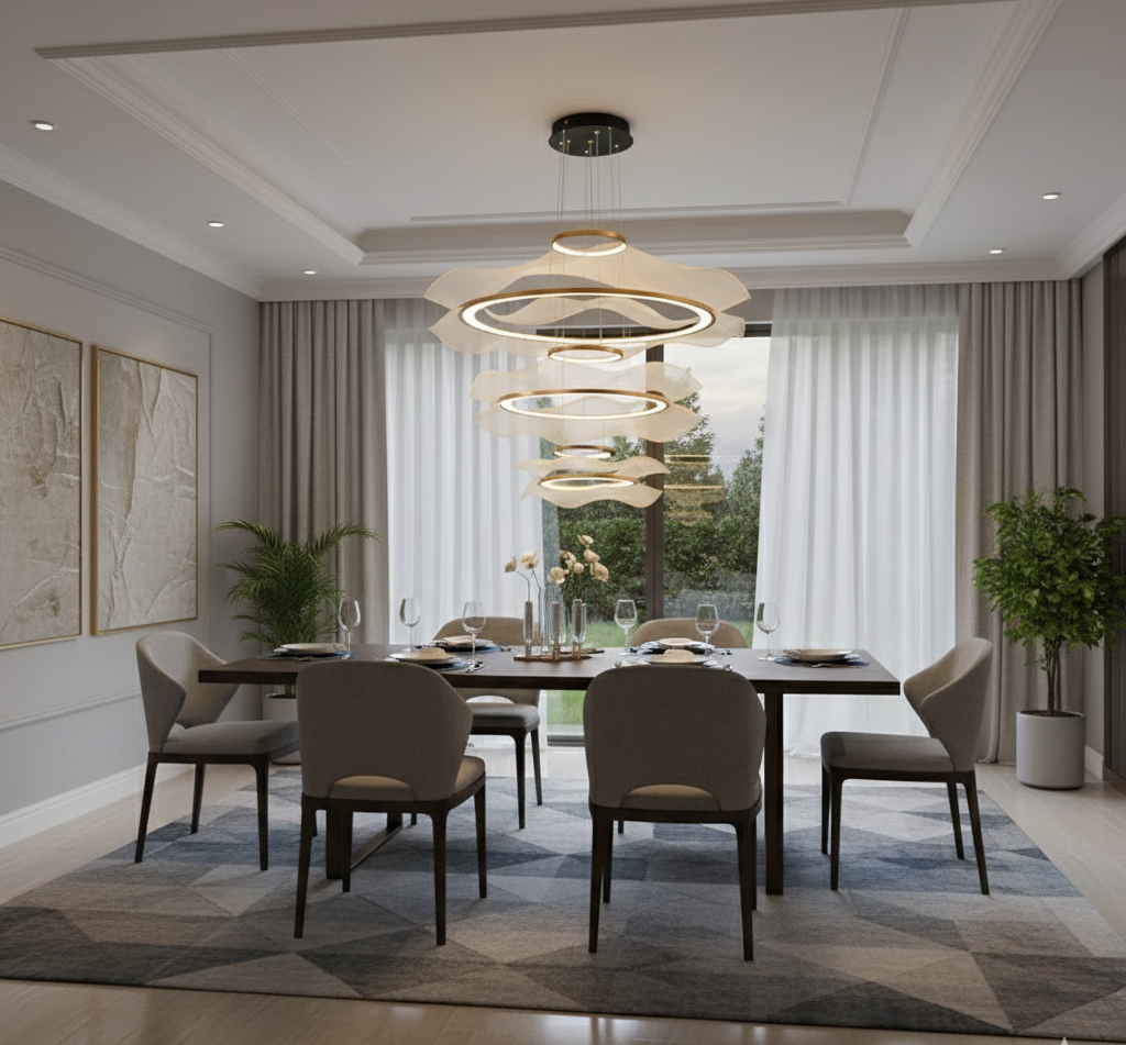 Avec ses multiples anneaux lumineux suspendus à des hauteurs variables, il devient une pièce maîtresse dans tout espace à fort volume. Facile à installer, ce lustre LED suspendu design ondulé combine esthétisme et performance, tout en garantissant une consommation électrique maîtrisée grâce à sa technologie LED intégrée.
