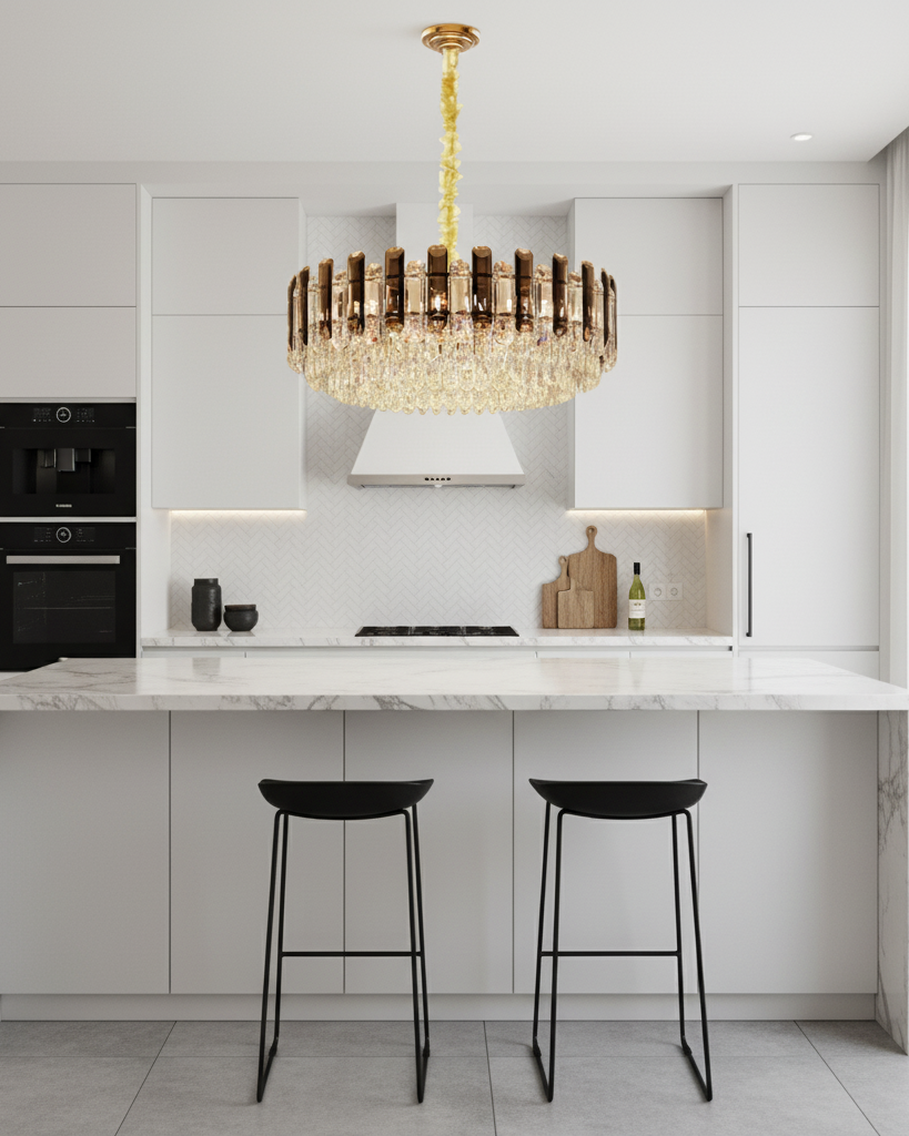 Apportez une touche d’élégance intemporelle à votre intérieur avec le lustre rond cristal fumé LED, un luminaire d’exception pensé pour sublimer les espaces haut de gamme. Conçu en cristal raffiné et alliage métallique poli, ce lustre combine luxe et modernité pour illuminer avec éclat vos salons, chambres, salles à manger ou espaces professionnels tels que les hôtels et restaurants.