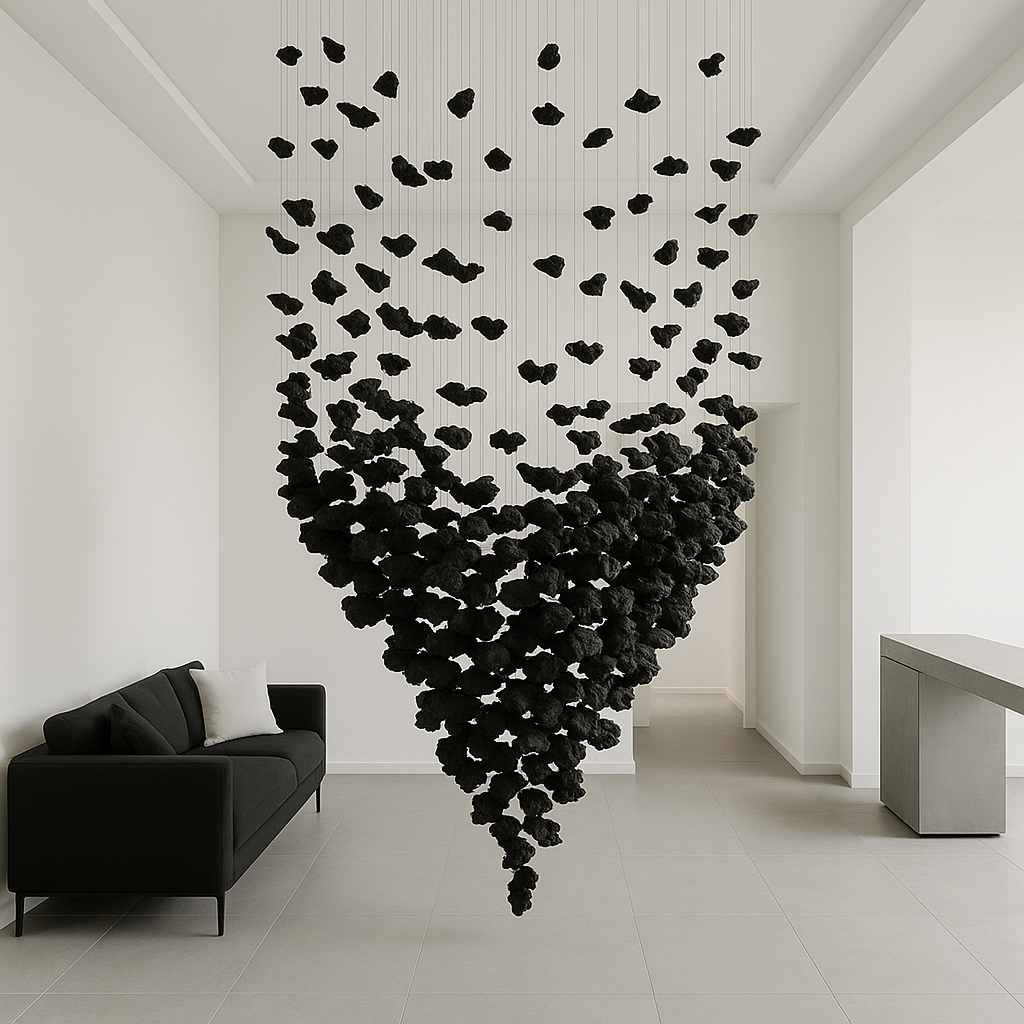 Chaque lustre suspendu artistique noir pierre est équipé d’ampoules LED intégrées, garantissant une luminosité homogène tout en économisant de l’énergie. Son installation suspendue par câbles fins donne l’illusion de flottement, renforçant l’élégance et le caractère sculptural du design.