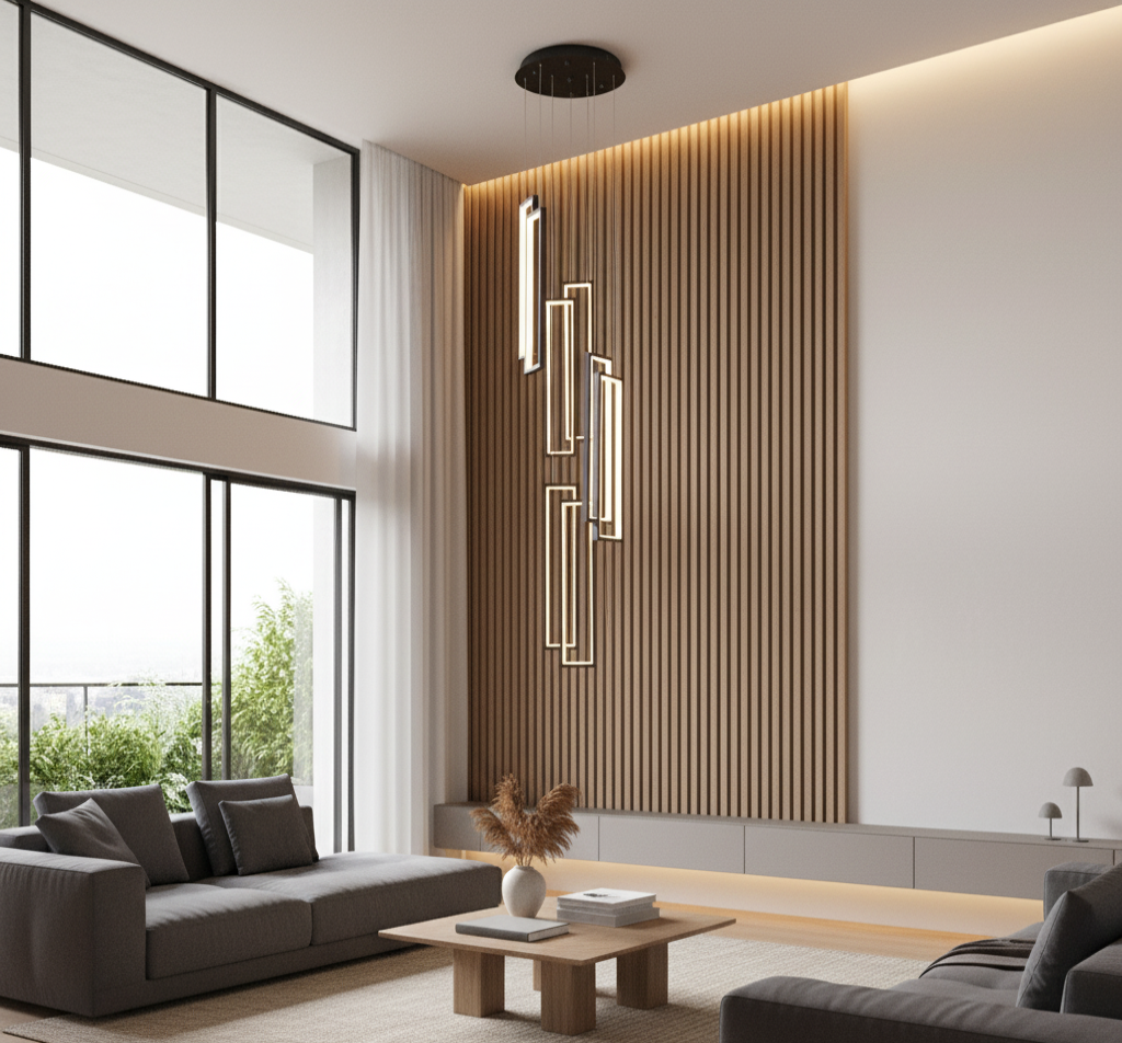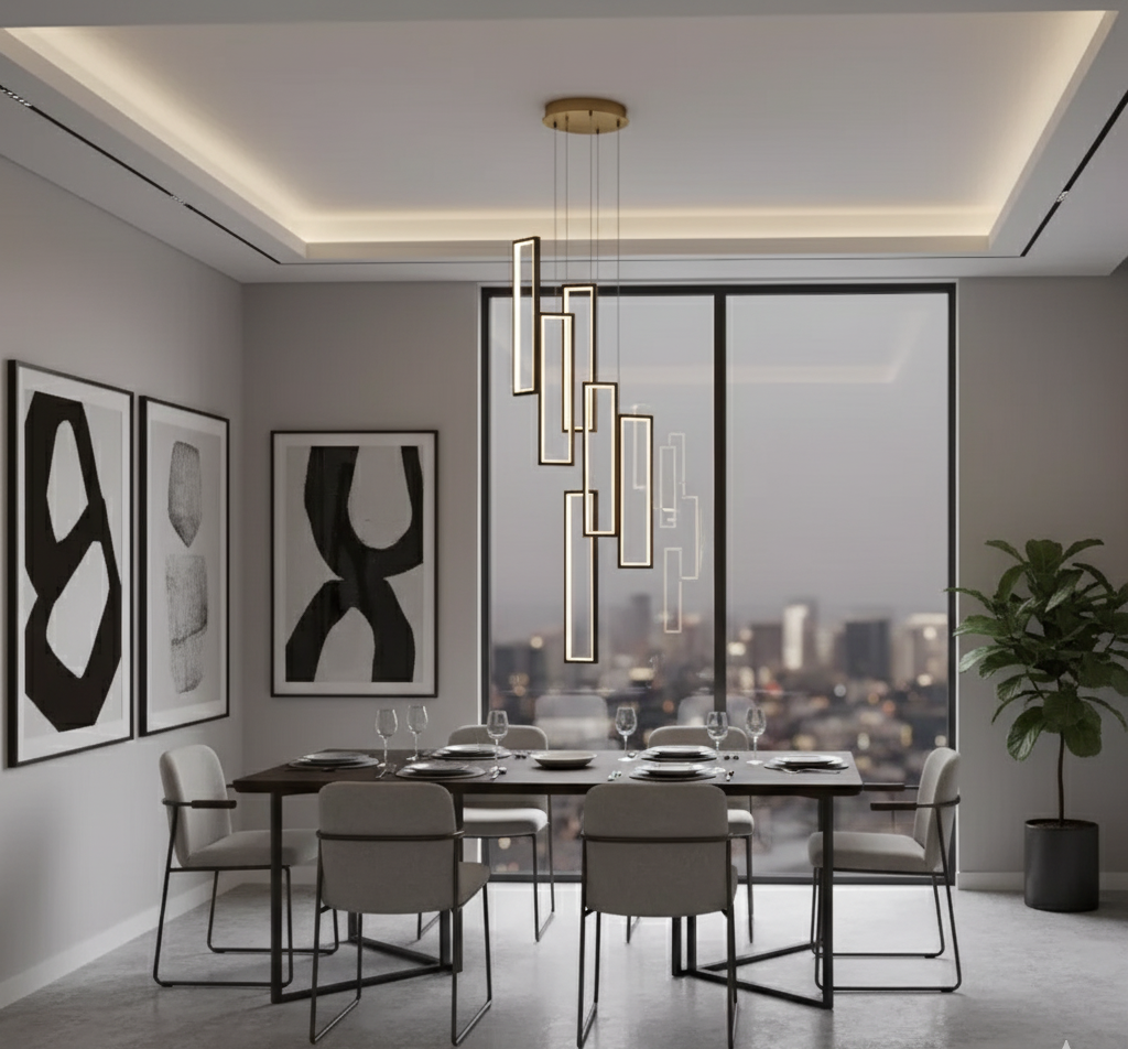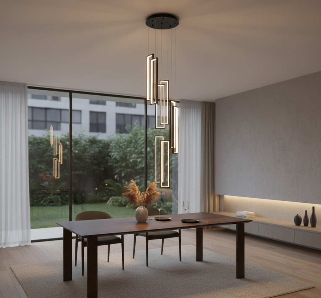 Ce lustre est une pièce maîtresse qui transforme votre intérieur en un espace architectural d'exception. Conçu pour les escaliers, les halls à double hauteur ou les villas contemporaines, ce luminaire haut de gamme associe une structure en aluminium à un diffuseur en silicone pour un rendu lumineux doux, diffus et élégant. Grâce à ses lignes verticales audacieuses et sa finition noire raffinée, le lustre suspendu moderne escalier apporte une touche sculpturale à votre décoration tout en assurant un éclairage efficace.